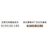 1、發票各聯次左上方的發票代碼使用防偽油墨印制,使用白紙摩擦票面的發票代碼區域,在白紙表面以及發票代碼的摩擦區域均會產生紅色擦痕(如下圖所示);